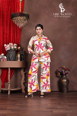 Step into sunshine with CordTropical, where bold tropical prints meet breathable comfort. Whether you're heading to a casual outing, brunch, or just want to light up the room — this outfit carries confidence in every color. It's easy to wear, easier to love.
