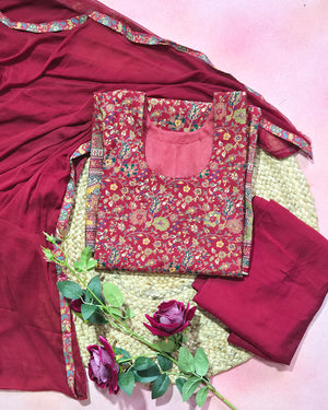Step into the festive season with our Muslin Cotton Kurtis, now in rich, earthy hues — Crimson Red, Mustard Yellow, Olive Green & Magenta Pink — paired perfectly with elegant Organza Dupattas.